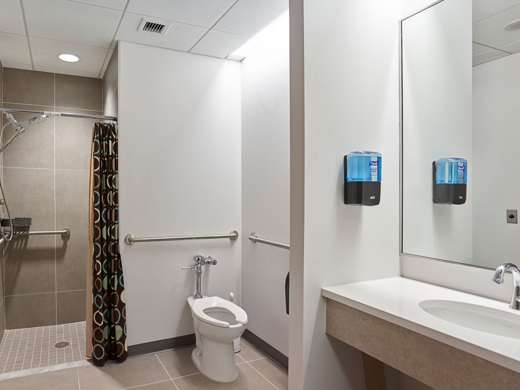 The six bunkroom restrooms, totaling approximately 335 square feet, were modernized with new ceramic wall and floor finishes, upgraded plumbing fixtures, lighting, HVAC, and cabinetry. The project also replaced all ceramic tile flooring and carpet throughout the ground and second floors and repainted wall surfaces to refresh and unify the entire facility. Together, these improvements restore Building 51 as a modern, efficient, and resilient home base for NIH’s emergency response operations — balancing durability, comfort, and efficiency in support of the Fire Department’s mission.